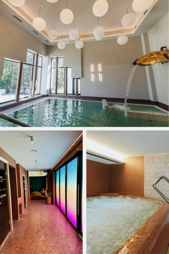 Išskirtinė SPA zona: pirtys, baseinai, jacuzzi ir jauki lounge zona, skirta 10–12 asmenų šventėms.